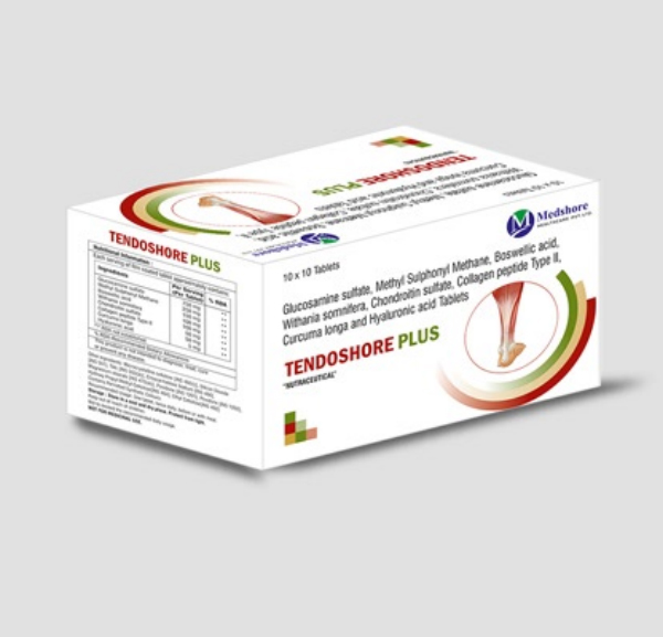 Glucosamine sulphate 750mg,methyl sulphonyl methane 250mg,boswellic acid 150mg,withania somnifera 100mg,chondrotin sulphate 100mg,collagen peptide type II 50MG,Curcuma longa 50mg,hyaluronic acid 5mg |